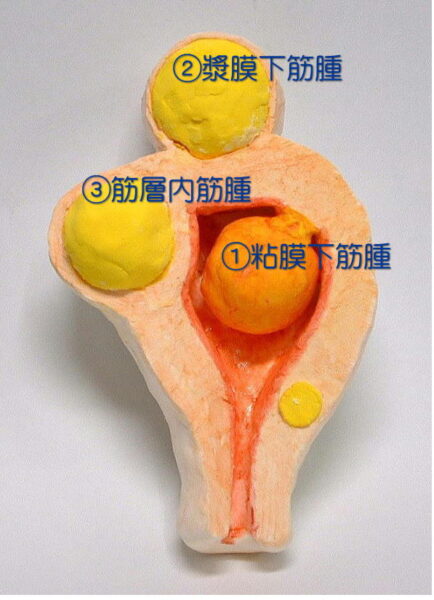 筋腫の発生部位には体部と頸部があり、それぞれさらに、外側(漿膜下)、筋層内、子宮腔内・頸管内(粘膜下)、に分けられます。